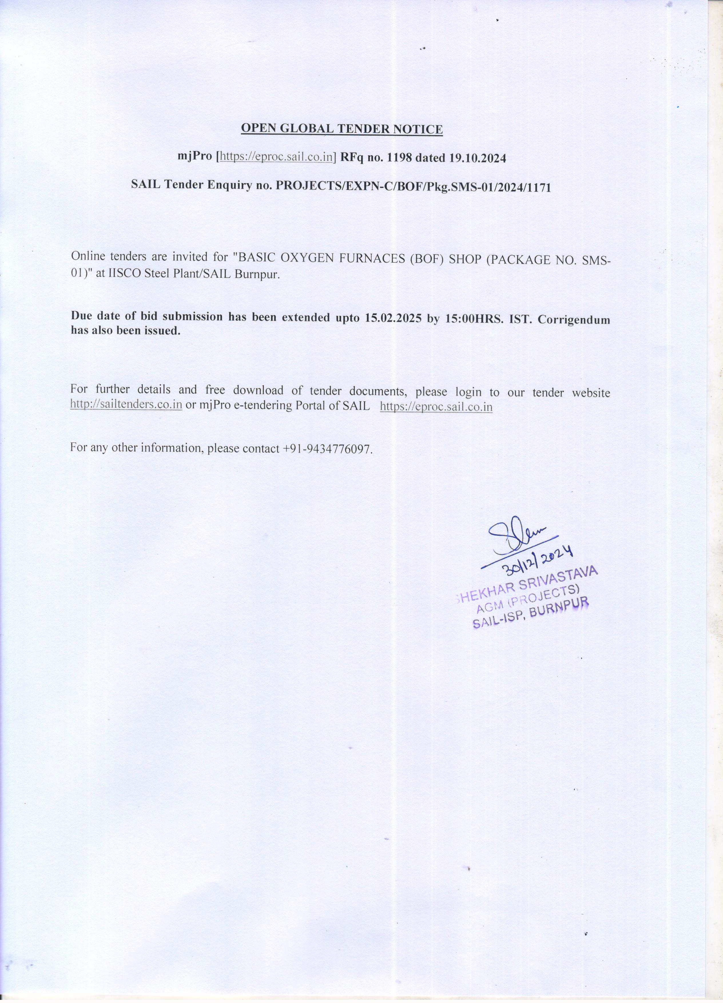 Description: CORRIGENDUM-(“BASIC OXYGEN FURNACES (BOF) SHOP (PACKAGE NO. SMS-01)" at SAIL-ISP Burnpur).