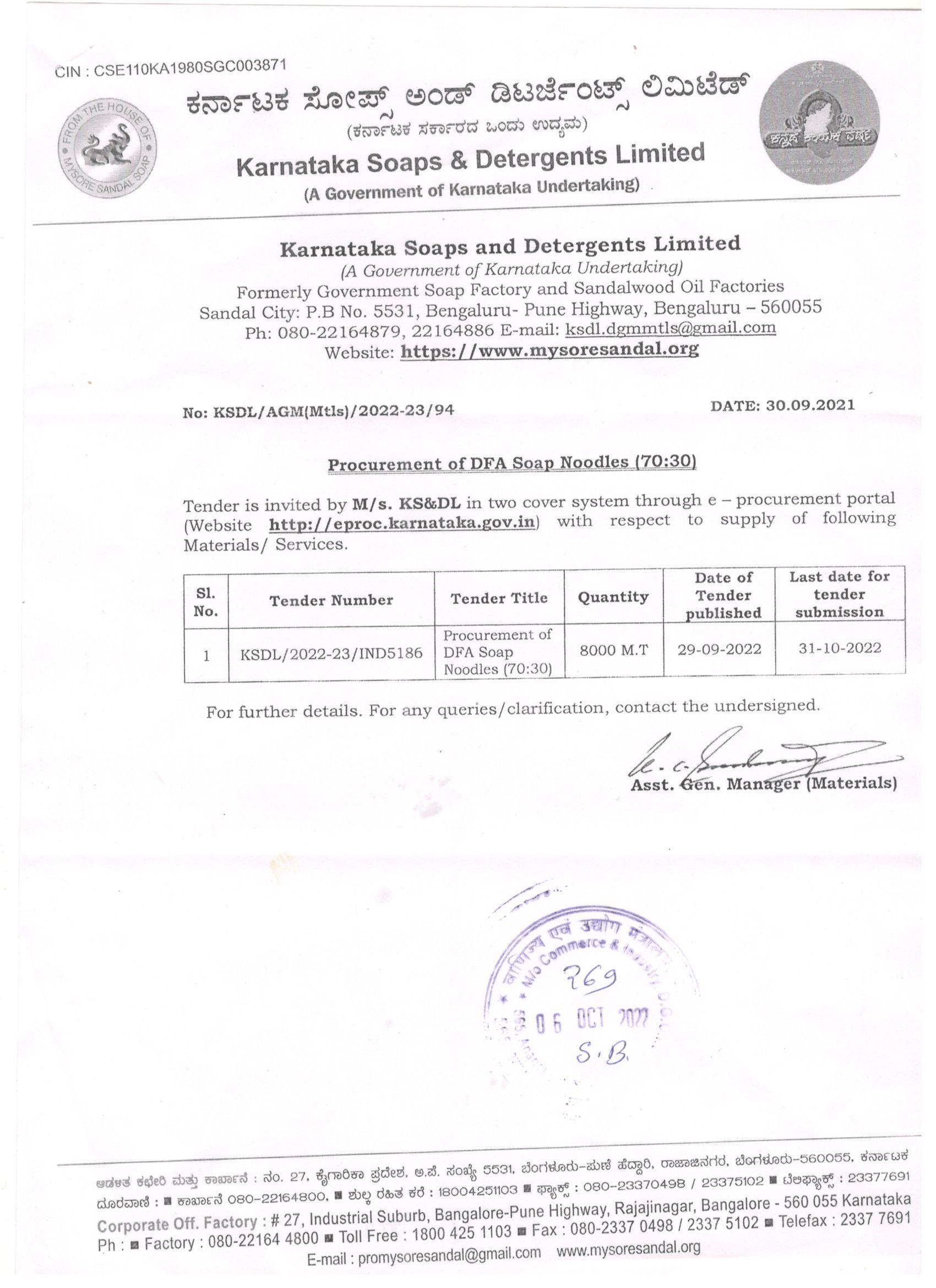 KARNATAKA SOAPS & DETERGENTS LIMITED